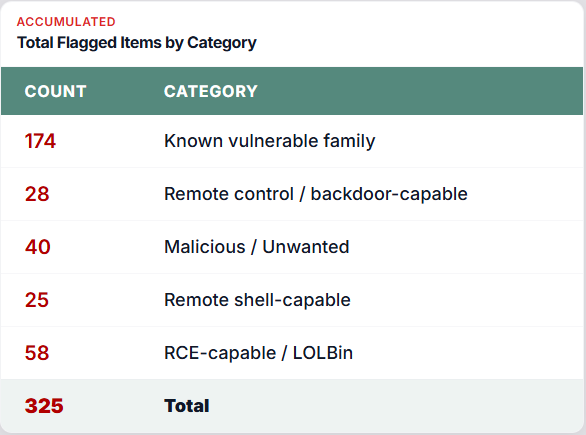 The report includes a list of all malicious software, and vulnerable software exploited by attackers that bypassed all other cyber defenses systems, successfully exited an infected computer and attempted to spread within the organization