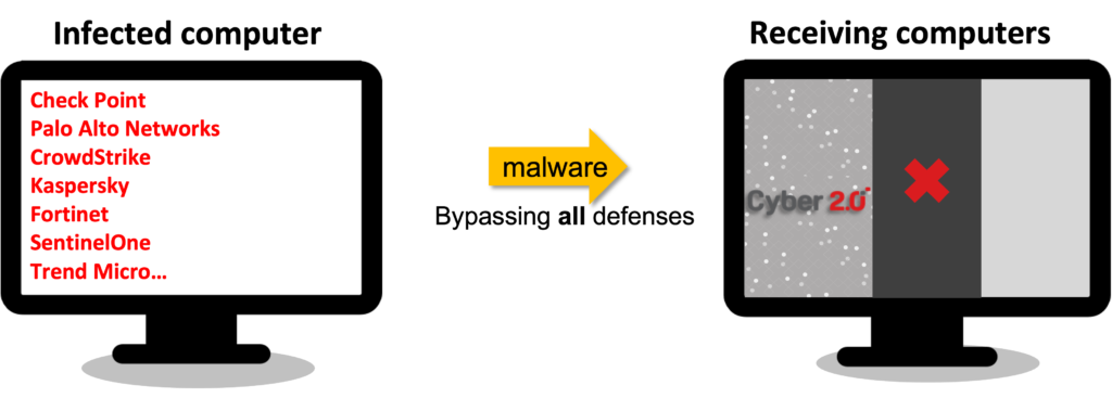 Every attack blocked by Cyber 2.0 on the computer it was targeting is an attack that exits from another infected computer, after having already bypassed all cyber defense systems.