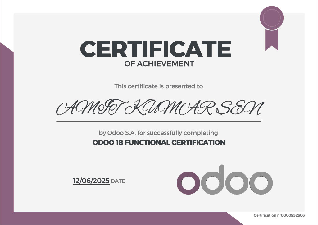 ODOO V18 FUNCTIONAL CERTIFICATION - AMIT SEN, 2025